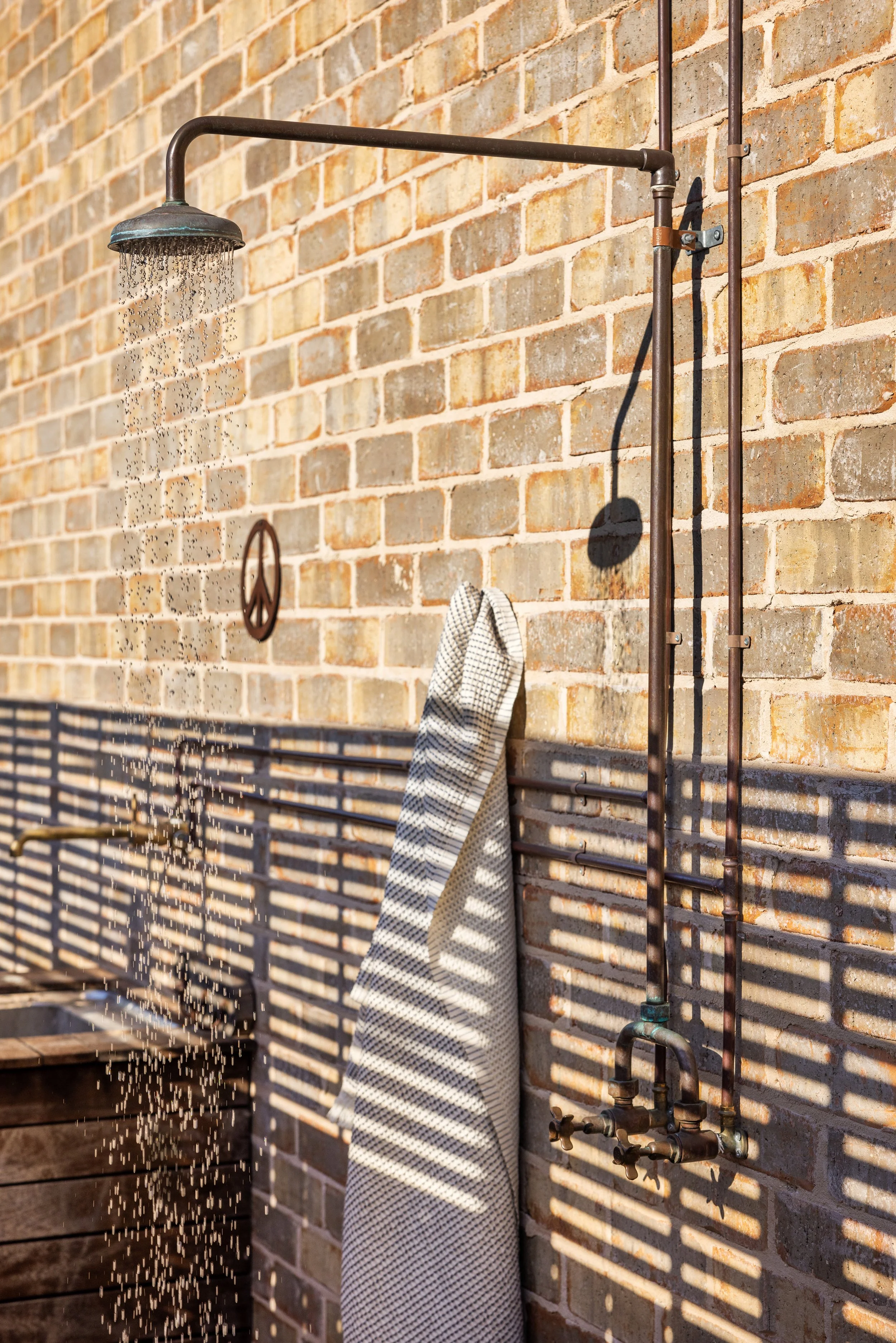 Our client takes full credit for the peace sign featured on the outdoor shower and we love her for it.
