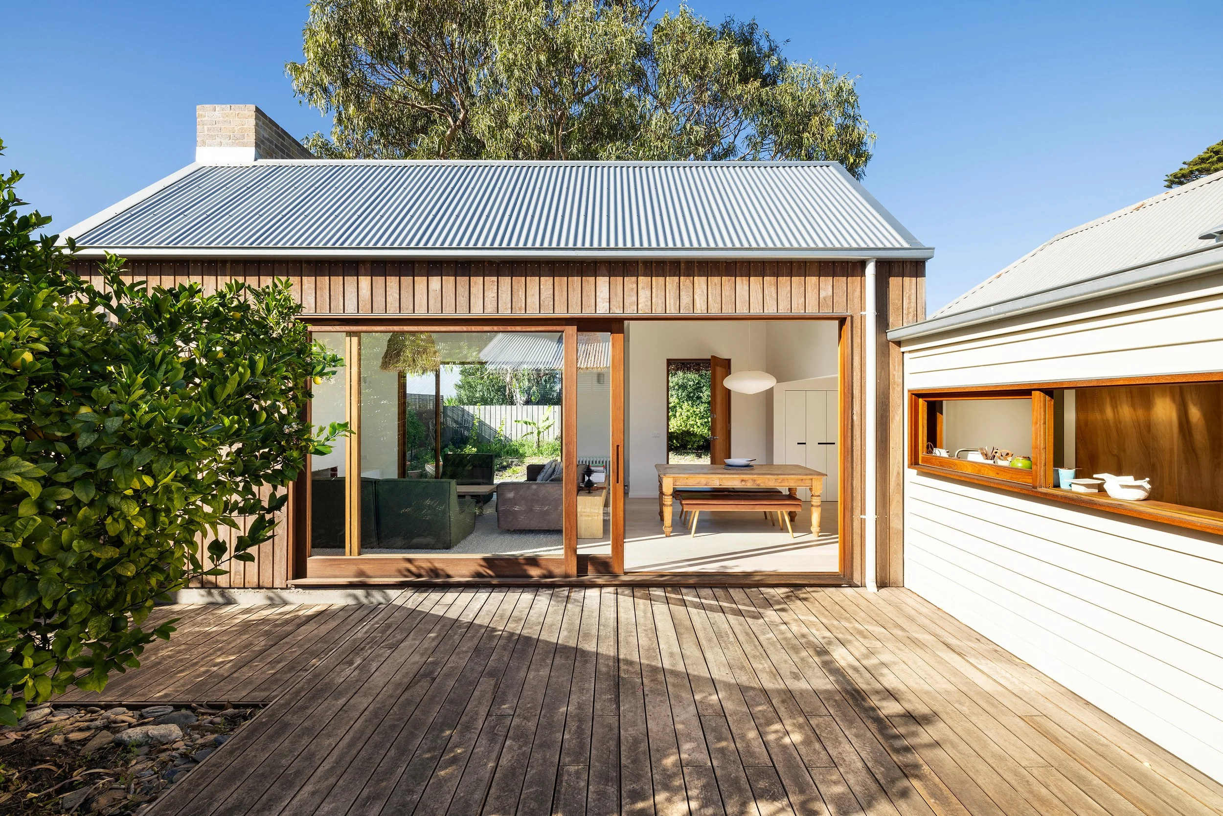 Nestled away from Port Fairy’s main road stands this charming cottage. Our brief was for renovations and a living wing addition, resulting in an off-beat gable roofed space that is friendly with the cottage, encapsulates the north light and connects to the garden.